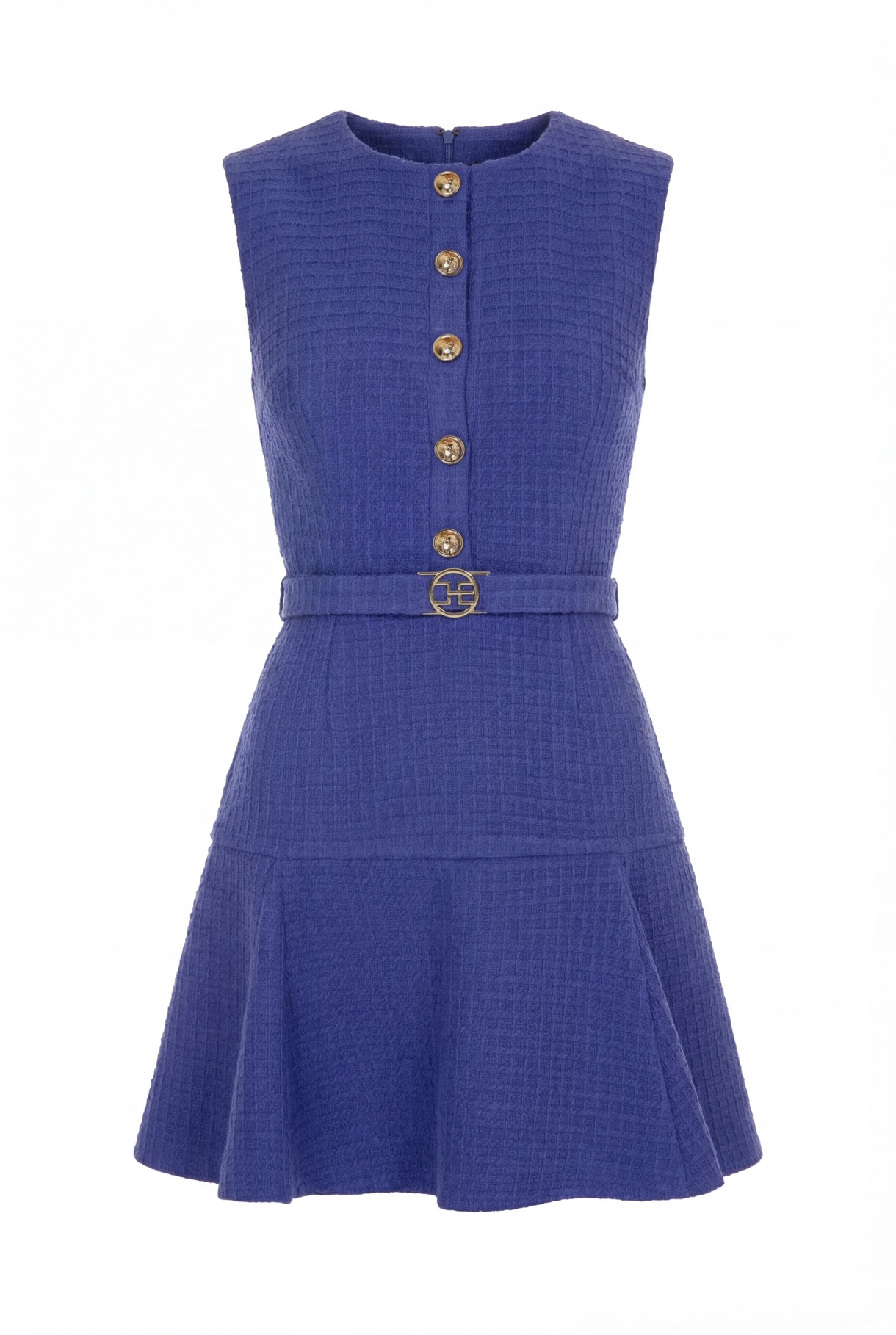 Къса рокля, изработена от италианско памучно букле в лилаво, изцяло подплатена с нежна подплата. Моделът е с предна част със закопчаване с метални златисти копчета с лого CHRISTINE и волан в долната част с плохи. Роклята е с отделен колан от основния плат с метална златиста тока с лого CHRISTINE. Закопчаване в задната част със скрит "YKK" цип.